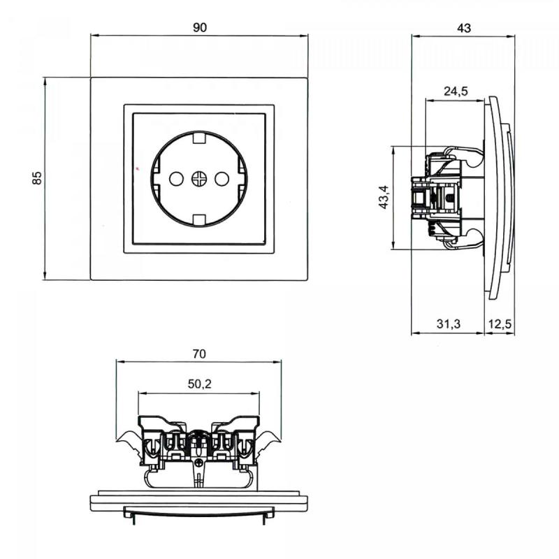 Dank praktischer Durchgangsanschlüsse kann der Strom bequem zu weiteren Steckdosen weitergeleitet werden – perfekt für eine flexible und effiziente Stromverteilung, insbesondere über Abzweigdosen.