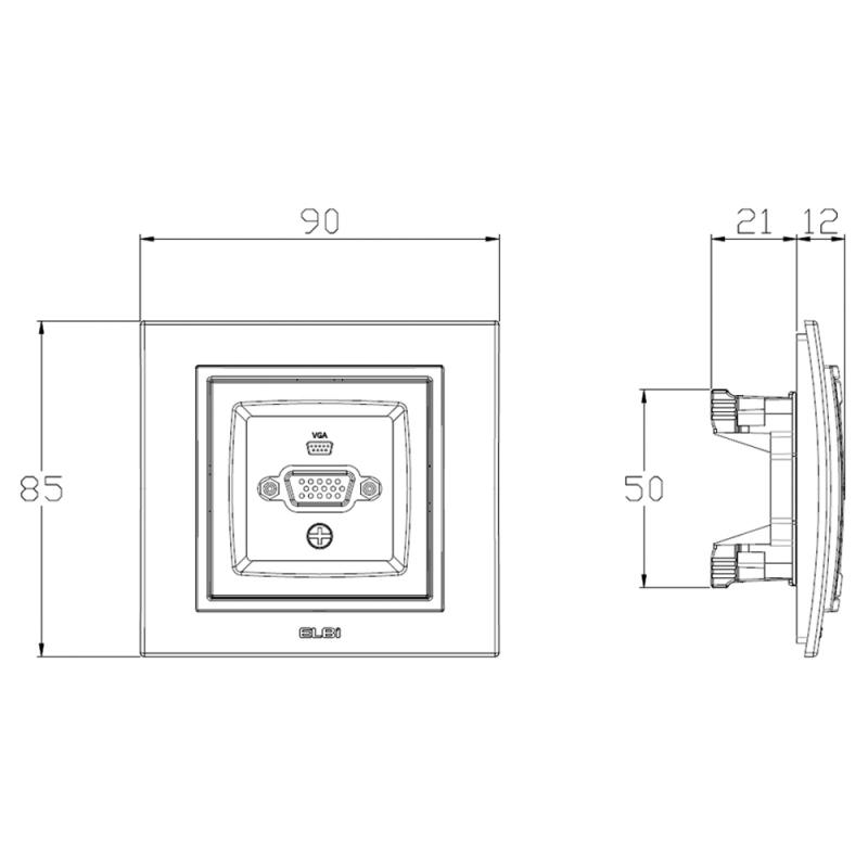 Die VGA Wanddose dieser Schalterserie mit direktem VGA-Anschluss an Vorder- und Rückseite ermöglicht eine einfache Verbindung mit PC-Displays und anderen Geräten, was flexible und unkomplizierte Installationen ermöglicht und eine reibungslose Nutzung gewährleistet.