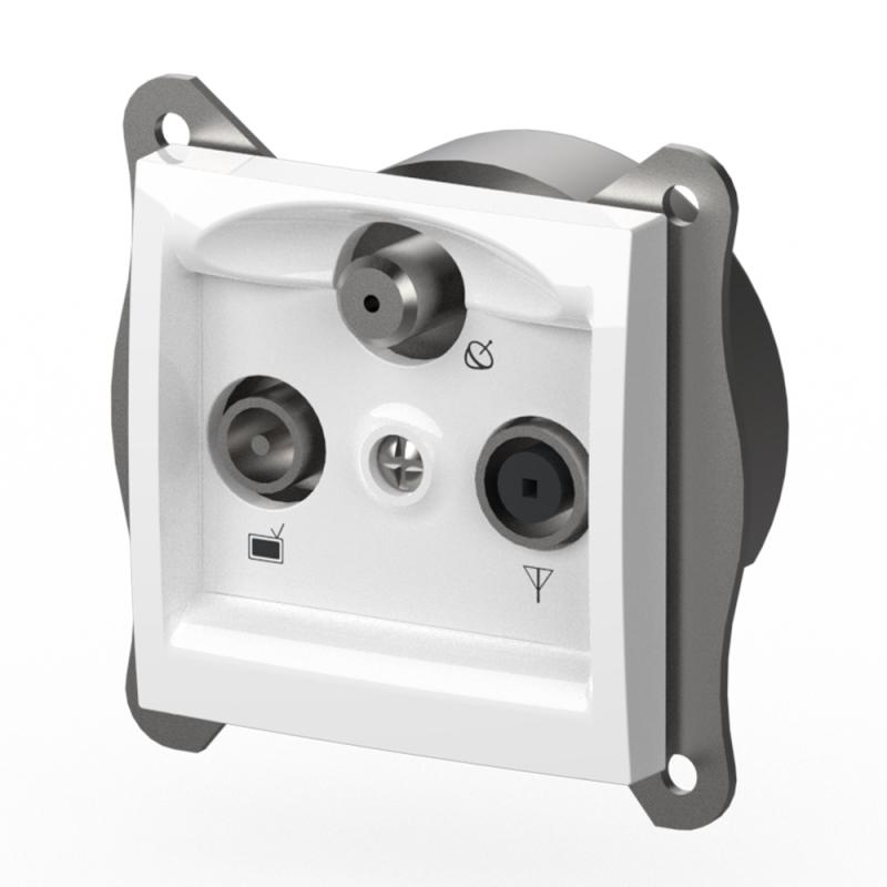 SAT-TV-Radio Dose dient die direkte Verbindung zur Satellitenanlage, Kabelanschluss, Raido oder auch zum Kabelmodem, wodurch Sie alle 3 Verbindungen gleichzeitig nutzen können. Mit einem Durchgang in der Dose wird das Satellitensignal durch diese hindurchgeschleust und kann gleichzeitig an ein weiteres Gerät weitergegeben werden.