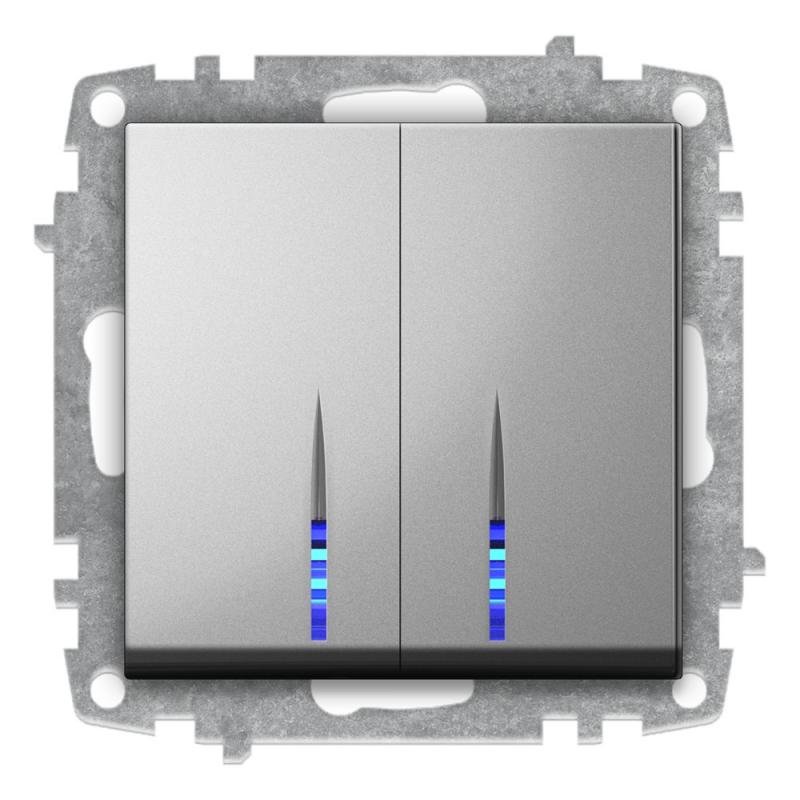| Einsatz: | Serienschalter zur Steuerung von zwei Lichtsystemen. Die Leuchten werden unabhängig von einander geschaltet. Die LED dient als Orientierungslicht bei ausgeschaltetem Zustand. |